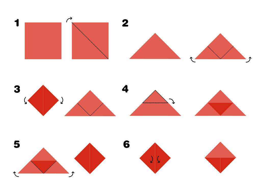 2. Pliez le carré obtenu en suivant les étapes ci-dessous.